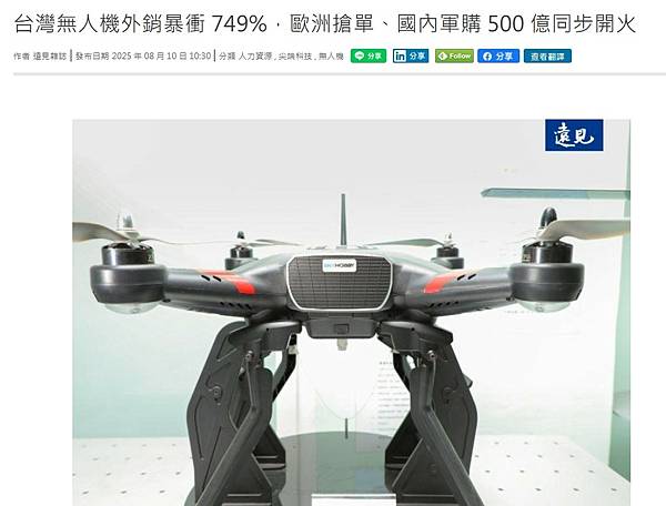 台灣無人機外銷暴衝 749%,歐洲搶單、國內軍購 500 億同步開火 | TechNews 科技新報