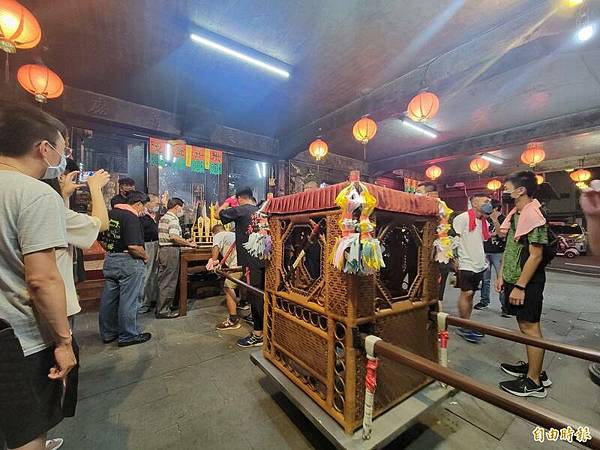 〔記者王姝琇/台南報導〕因疫情影響連續2年停辦的台南市縣城隍廟「大駕夜巡」今年確定復辦!廟方表示,依神明指示,於農曆八月初一至初三連續3天「放告」、初八晚「大駕夜巡」。為此,大駕特地提前到開基玉皇宮及台灣首廟天壇向玉皇上帝稟告相關事宜,途經正在展出「亞洲的地獄與幽魂展覽」的南美二館,引起好奇民眾圍觀。