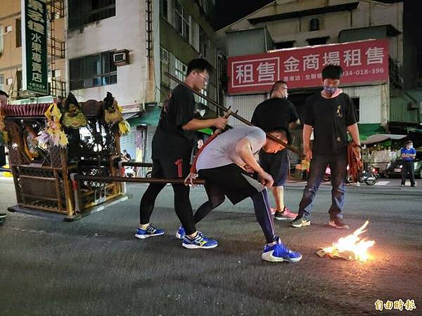 民間信仰認為路口易發生事故、煞氣重,所以城隍爺夜巡也會隨機於路口舉行「路祭」去煞。(記者王姝琇攝)