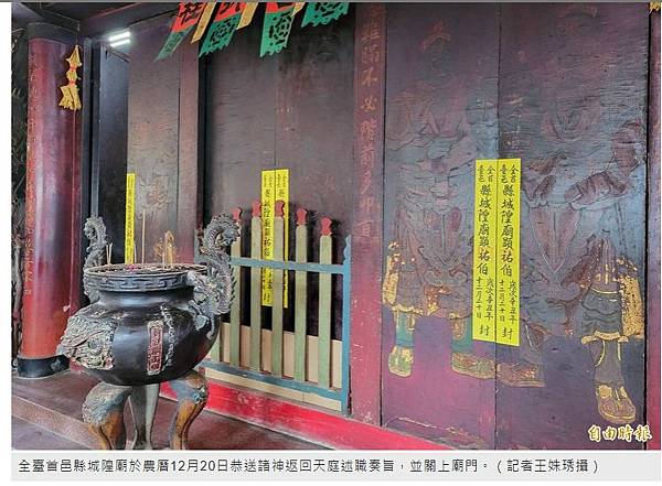 全臺首邑縣城隍廟於農曆12月20日恭送諸神返回天庭述職奏旨,並關上廟門。(記者王姝琇攝)