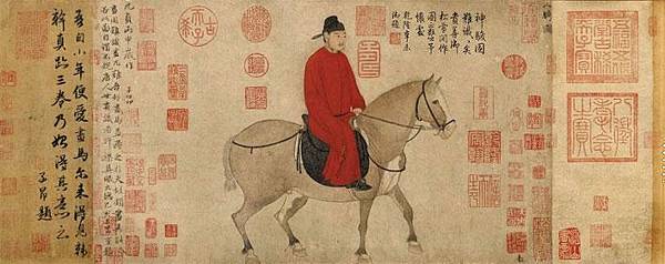仁宗皇帝還命人把趙孟頫與管道昇的作品裝裱成軸,並蓋上他的御印,珍藏於祕書監。
