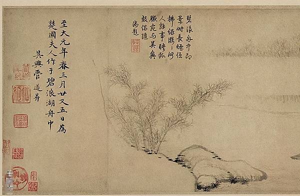 管道昇看到父親拿來的趙孟頫的字後,心中起了層層漣漪,並認真地為趙孟頫畫了一幅,她最拿手的修竹。