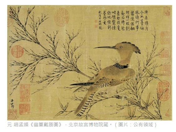 元 趙孟頫《幽篁戴勝圖》,北京故宮博物院藏。(圖片:公有領域)