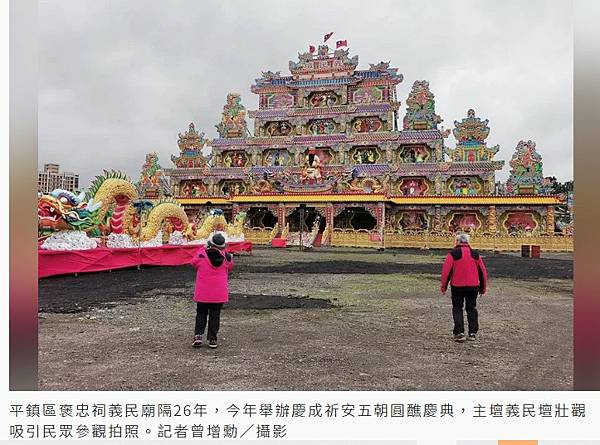 平鎮區褒忠祠義民廟隔26年,今年舉辦慶成祈安五朝圓醮慶典,主壇義民壇壯觀吸引民眾參觀拍照。記者曾增勳/攝影