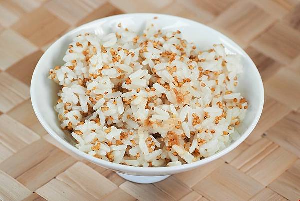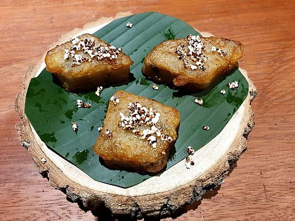 除了這道油芒小米粥,另一道藜藜糕,用小米、紅藜製成,上面撒上油爆的油芒,是我非常喜愛的一道甜點。油爆過的油芒像是縮小版的爆米花,口感也類似,點綴在甜點上,吃起來多了層次的口感。