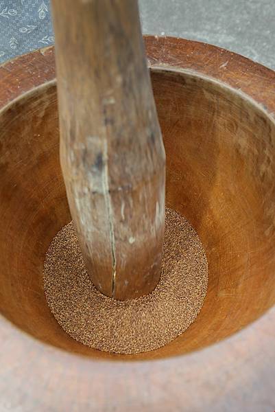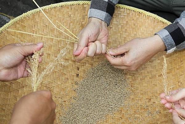 採收後的台灣油芒容易保存,只要綑成一束一束,收在倉庫裡,需要時再拿出來取下要食用的穀粒數量進行處理,十分方便。