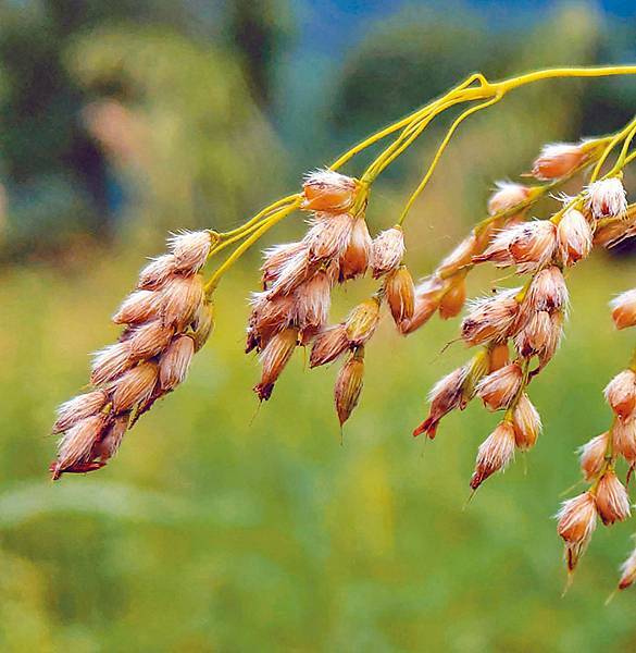 右邊兩簇穀物就是營養成份高於稻米的臺灣油芒。