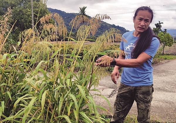 43歲布農族邱曉徵原來只想找回布農族傳統穀物,沒想到在部落消失近半世紀的油芒,竟然是科學家口中的超級未來食物。(中央社盧太城)