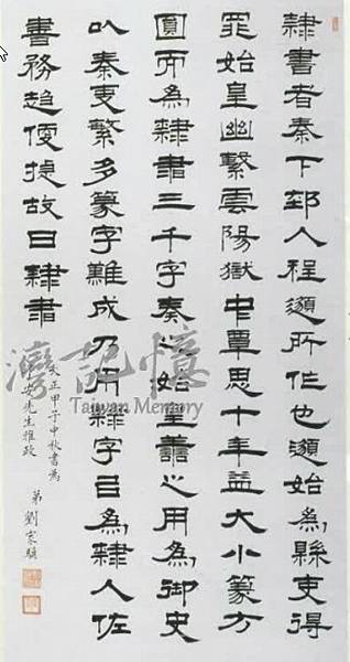 劉家驥先生,精解四書,於臺灣被割讓予日本後從事製樟腦業,日據時代臺灣北、中、南有各書道會之成立,臺南「善化書畫會」創立於民國十六年,於國民政府遷台1947年之「善化書畫展」中,劉家驥先生之書法頗受讚譽,尤擅楷書。