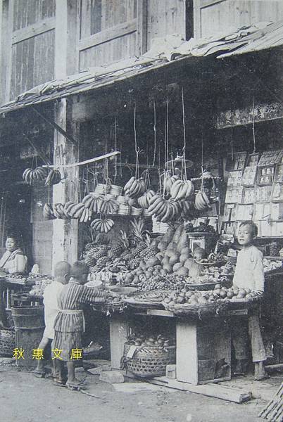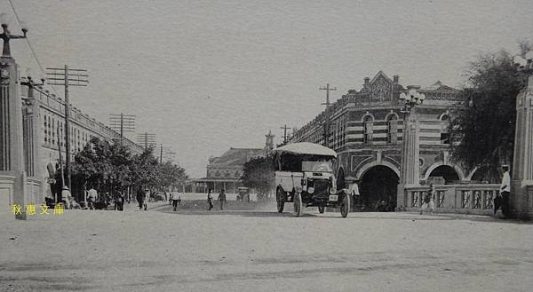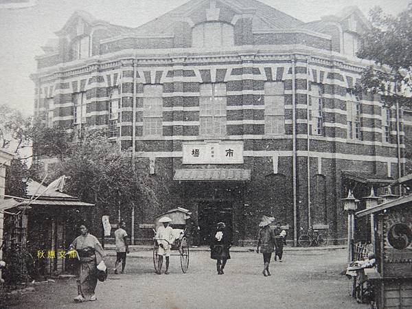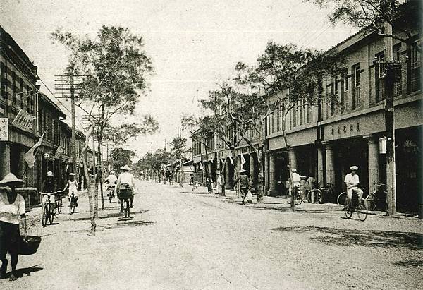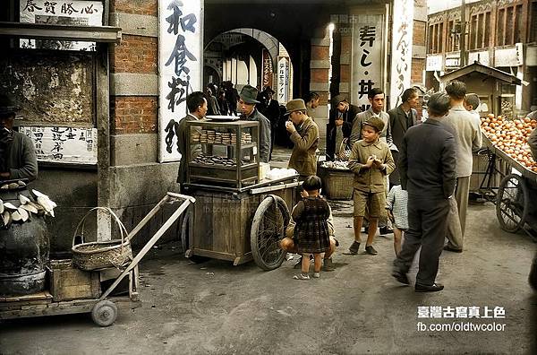 李火增拍攝約1942臺北太平町光食堂支店亭仔腳前(經手繪數位上色),位置約在今延平北路南京西路交叉口東南角,現已不存。
