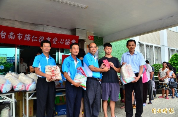 後市愛心協會今天在歸仁區公所舉辦年中送暖的弱勢關懷活動,除了發放給256戶低收入家庭現金紅包之外,還結合可承工程、黃志哲等企業與個人共同行善,一併致贈白米、麵食等民生物資。