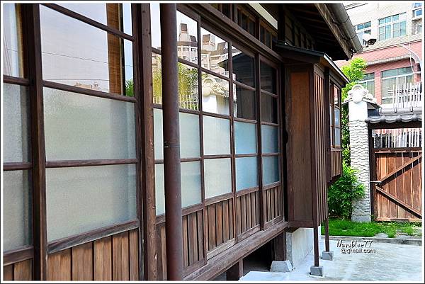 台南新營,三一宅藝空間,新營咖啡廳,新榮下午茶,新營日式老房,台南美食,台南咖啡廳,台南景點,新營古蹟我稍微搜尋了一下,所謂和洋折衷建築概指將日本和風建築與洋風建築融合。(在日本造屋基本結構上添加西方元素,如維多利亞、巴洛克風格等,台灣有相當多老屋案例留存。和洋折衷建築在屋頂上有馬薩式、圓頂形式,代表建築為國立臺灣博物館、臺南地方法院)屋頂由灰黑屋瓦鋪疊,建築周圍有設有庭院,房子佔地約753平方公尺,大多使用檜木,進到屋子裡有淡淡的檜木香氣。