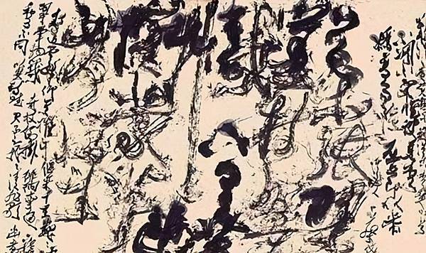 “亂書”,有兩種說法,一種是從表像上看似是很亂的,是“雜亂無章”的,它的字與字的筆劃相繫穿插,相互交織,即使辨認起來也是非常困難的,何況去學習和臨摹呢?另一種是王冬齡的說法,它是一種藝術性的表現方法,是筆墨在時間和空間上的一種舞蹈藝術。這不,人們不是經常說,書法是一種無聲的音樂、無言的詩句嘛,它也是一種無形的舞蹈。對於王冬齡的書法藝術來說,這就是一種舞蹈。