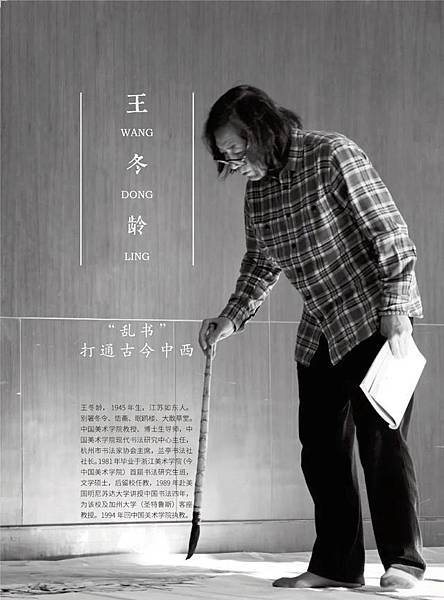 王冬齡是中國美術學院書法博導、教授,擅長行草書書法的研究與創作,他所帶出來的很多學生如今也早已成為書法界的精英。王冬齡在書法上的成就就在於他的“亂書”。他說,所謂“亂書”,就是相對於古人的“整齊”書而言的,古人寫字時往往把行與列分得很開,即使是草書,也是有行與列的,而亂書就是指字間、行間都沒有明顯的分割,甚至是穿插,這樣的書寫是他的一種嘗試,是筆墨表現形式的一種藝術性。