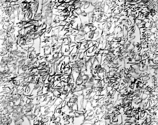 仔細分析“亂書”,它也是有規律可循的。比如,行,雖然有交織,但也能分割開來,字,雖然有交叉,卻也能辨識。王冬齡的亂書,在藝術性上來說,猶如一張張“網”,它聯結了各種情結在一起,雖然密不透風,但也從時空關係中找到一些“出口”,總歸還是要從藝術的空間裡走出來的。