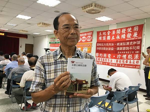 「神鬼行者」許獻平老師展示出版台南市西港區有應公廟採訪錄新書。(記者邱仁武/攝)。