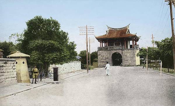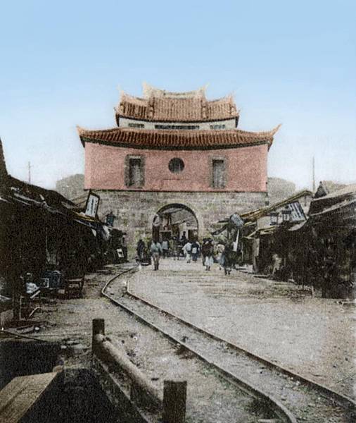 城門、行人、人力車、馬車、輕便車軌
