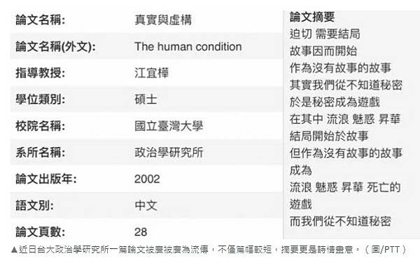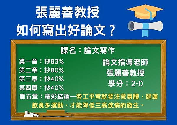 同學們學會了嗎?這是一篇張教授自認為「寫得非常好」的論文,大家應努力學習,非常勵志,人人都有機會取得碩士學位。