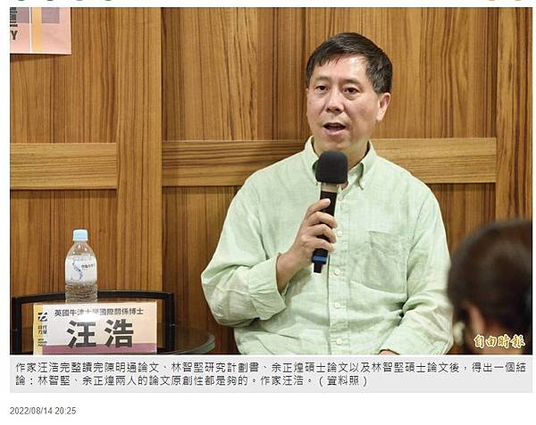 陳直言,余的論文使用的許多資料,都是他和林智堅寫的,沒有一個表是余做的,余卻去告林智堅抄襲。只因為林智堅畢業比較晚,台大就認定是抄襲,真的是一場「世紀大冤案」。