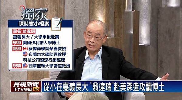 筆名「翁達瑞」的旅美學者陳時奮。(圖擷自臉書)