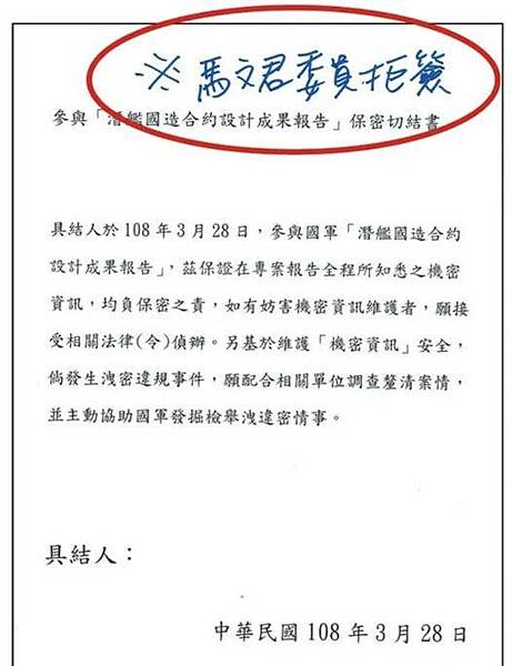 保密切結書曝光!註記「馬文君委員拒簽」 王定宇:就她沒簽 - 政治 - 自由時報電子報
