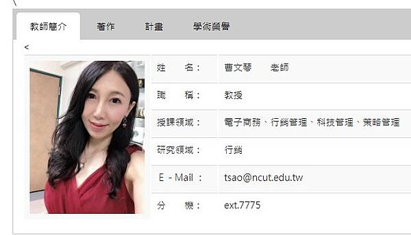 曹師外貌姣好,常受邀演講,專業度頗受好評,2014年以專門著作申請升等教授資格審定,經勤益大學初審通過,報請教育部複審。審查委員質疑曹的著作與指導學生論文內容大幅度雷同,卻未列學生為共同作者,有違反學術倫理疑慮。