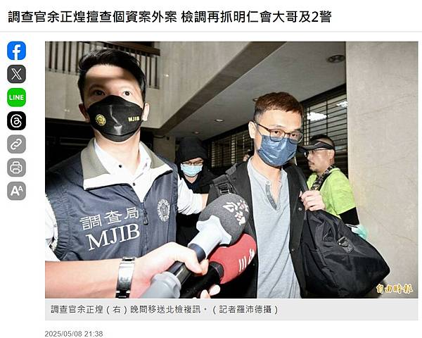 調查官余正煌擅查個資案外案 檢調再抓明仁會大哥及2警 - 社會 - 自由時報電子報 https://bit.ly/3YA1llp