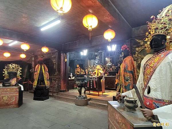 七爺八爺、文武判也請出廟外在兩側待命,形同法警。 (記者王姝琇攝)