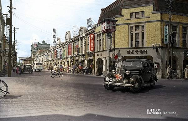 圖為李火增拍攝約1940臺北榮町影像(原圖黑白) 數位上色,收錄於《彩繪李火增》