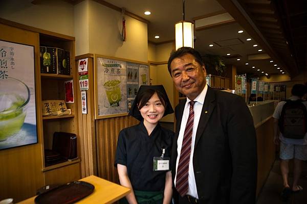 來到京都祇園辻利這天,迎接我們的是幾天前還在住院的三好通弘會長。儘管身體微恙,但為了和來自台灣的我們見面,老人家還是堅持親自受訪。走進不算寬敞的店內,在店員的引導下一行人來到地下的會客室。一進入房間,我的目光立刻被牆上掛滿的賞狀與家族照片吸引;這裡的佈置處處可見台日兩地間的深刻羈絆。而就在我準備錄音的當下,高齡83(2017年)的他突然以洪亮的嗓門唱起了〈台灣神社のお祭り日〉,似乎一談到台灣就元氣飽滿,忘了自己才剛出院。
