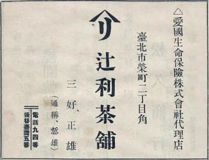 通弘先生的祖父三好德三郎(1875-1939)為日治初期即來臺從商的日人,1899年抵臺後長期於臺北文山、坪林等地從事烏龍茶的調查研究,且於臺北榮町經營辻利茶鋪(今重慶南路與衡陽路口,現為星巴克重慶門市),除販售烏龍茶、紅茶外,也賣自製茗茶,號稱「皇家指定,榮獲各博覽會、共進會金銀大賞」,對於臺灣茶的發展極具貢獻。德三郎亦與官方往來密切,先後擔任臺北府前街郵便局長、臺北州協議會會員、臺灣總督府評議會會員、臺灣共進會迎賓館主任委員等職,其地位與影響力不能小覷,素有「民間總督」之稱號。(圖2-圖3)