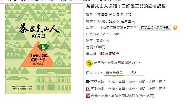 謝國興、鍾淑敏、籠谷直人、王麗蕉主編,陳進盛、曾齡儀、謝明如譯,《茶苦來山人の逸話:三好德三郎的台灣記憶》,台北:中央研究院台灣史研究所;京都:京都大學人文科學研究所,2015年