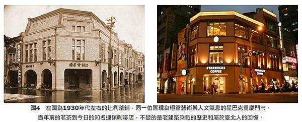 圖4 左圖為1930年代左右的辻利茶鋪,同一位置現為極富藝術與人文氣息的星巴克重慶門市。