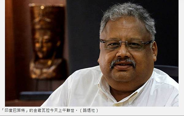「印度巴菲特」的金君瓦拉今天上午辭世。(路透社)