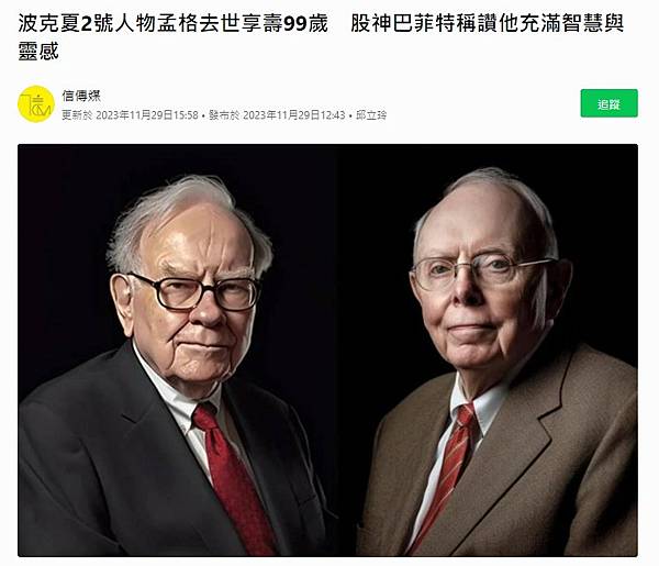 波克夏2號人物孟格去世享壽99歲 股神巴菲特稱讚他充滿智慧與靈感 | 信傳媒 | LINE TODAY https://bit.ly/3ULaJRn