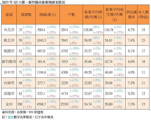數字科技(5287)旗下的591新建案指出,延續928檔期量縮格局,第3季推案力道持續弱化,尤其在總統大選白熱化及囤房稅2.0等議題攪局,政策環境忽高忽低難以預料,造成建商不願當出頭鳥,寧可暫緩推案或低調行事,部分地區開始步入盤整階段。