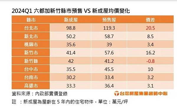 《台灣房屋》根據實價資料,統計新竹地區近三年的預售屋房價,其中新竹市2023年均價52.7萬元,每坪比2021年高出20.3萬,大漲超過6成。新竹縣則從31.1萬元漲到42.3萬元,漲幅亦達36%。