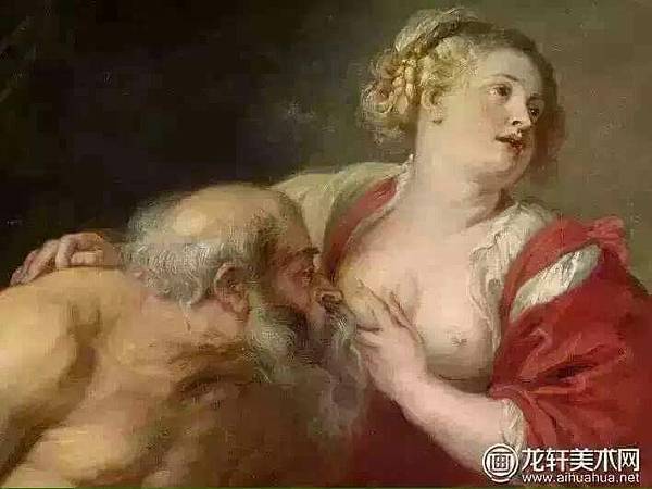 這是著名畫家魯本斯的《西門與佩羅》(Cimon And Pero)。一位年輕的女人不知羞恥地露著胸部,一位衣衫不整的老人吸允著她的乳頭。