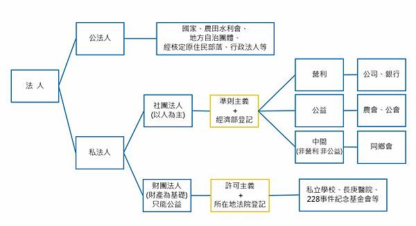 所謂「法人」,指的是依法獨立享有民事權利和承擔民事義務的單位,是一個專門的法律術語(相對於我們一般的「個人」在法律上是稱做「自然人」)。坊間常將公設財團法人稱為「公法人」,這是對其性質的長年誤解。公設財團法人無論是依據《民法》或個別的法律來設置,都是「私法人」,也就是說,不具備公法及行政性質,是以實現利益為目的所設立的機構。在法律上,公法人僅有國家、地方自治團體(含縣市、鄉鎮市,如臺北市)、農田水利會、行政法人等四類,1其中最常被與公設財團法人混淆的,當屬行政法人。公設財團法人和屬於公法人的行政法人有何差別?確實,這兩類組織都是協助行政機關執行任務、運作有彈性的法人機構,所以非常近似,但在學理上,行政法人是公法人,其特性較靠近政府機關;公設財團法人是私法人,與純民間機構較為接近。從法律性質的角度,公設財團法人所受監督課責的密度,是不宜高過行政法人的,但又必須比純民間機構來得高。