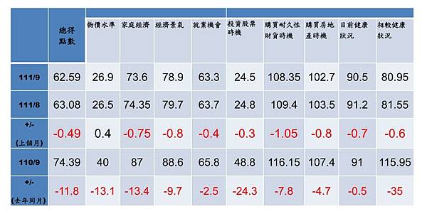 吳大任進一步分析,耐久財、房屋購買的消費信心低落,真正重點在家庭經濟狀況出現12年來最糟情況,去年到現在通膨感受明顯,家庭經濟處於通膨陰影下更加惡化,近兩年購屋民眾增加,單件房貸動輒2、3千萬元,央行今年升息2碼半,利息支出超過預算,家庭無力購換耐久財
