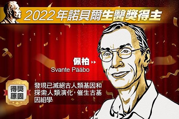 瑞典遺傳學家、進化遺傳學權威帕博(Svante Pääbo)獲得2022年諾貝爾醫學獎,他透過開創性研究對現代人已滅絕的近親「尼安德塔人」(Neanderthal)進行基因定序,更發現這些古老的基因流向與人類生理相關性,包括感染新冠病毒後的反應。學者表示,今年諾貝爾獎彰顯了基礎科學的重要性,這些演化上的蛛絲馬跡,將會成未來研究醫學疾病重要線索。