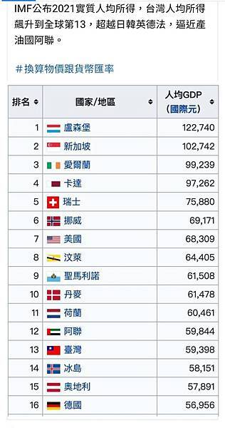 IMF統計:台灣人均GDP 5.23萬美元、全球第19! - 自由財經 https://bit.ly/3EeNsQf