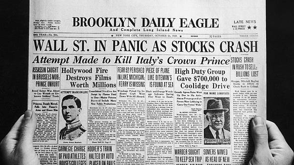 1929年10月25日,紐約股市崩盤,1300萬股股票被恐慌拋售,一天內市值蒸發近300億美元。