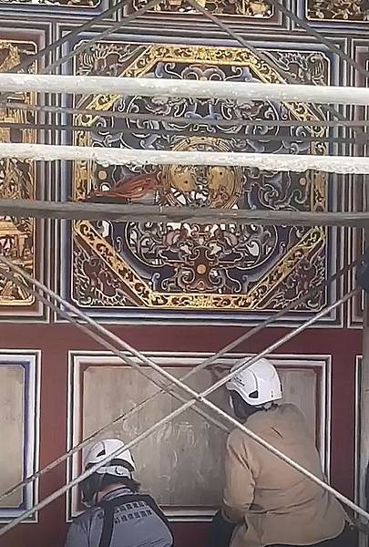 有民眾指稱,今天路過鹿港龍山寺,卻發現五門殿虎邊的「夔龍窗」有工作人員,仔細一看竟然是拿筆在畫「夔龍窗」下方「螭虎爐堵」的邊框,這真是太令人驚訝到說不話來了。