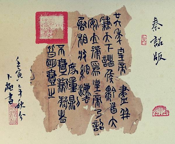 這種詔版形制,同時還為人們提供了一個文字書寫的範本。因此,在書法的發展演變歷史上,《秦詔版》還具有非常重要的書法價值,尤其對後世的書法創作有著極為重要的影響。