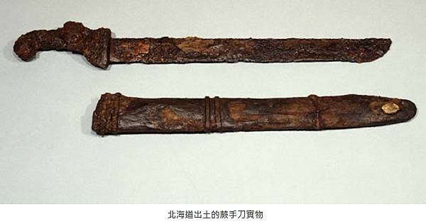 日本人明確記載了當時「朝廷軍隊」用的是「直刀」,而蝦夷人拿著一種叫「蕨手刀」的彎刀,這種刀的刀把頭不同於漢環刀那樣的圓圈,而是個蝌蚪狀的彎頭,像捲曲的蕨類植物一樣。
