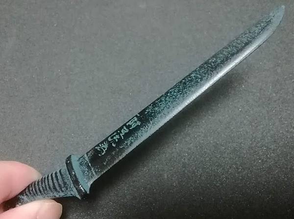 上圖是平安中期時代的金錯銘直刀,採用了典型的切刃造型,這種工藝我們經常在漢劍和複製唐刀上看到。