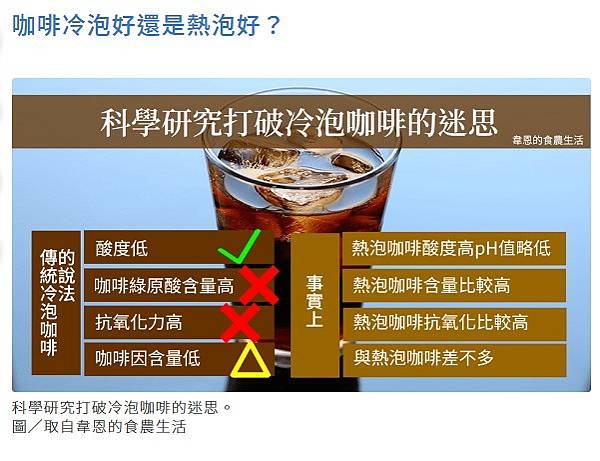 所以如果是為了喝到更多抗氧化物,建議要熱泡咖啡。但是冷泡咖啡有截然不同的風味,想要變化享用咖啡的方式的話,冷泡咖啡當然也是一種好選擇。