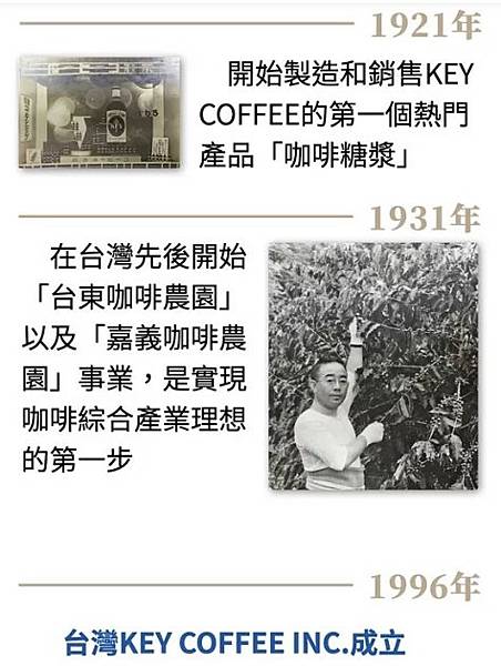 其實台灣也曾經是日本時代重要的咖啡產地,一棵台東百年咖啡樹,牽起日本與台灣的咖啡情緣裡為大家介紹了,其實台灣種植咖啡的歷史可是超過了一百年,而台灣的咖啡曾經暢銷日本,當年如果沒有世界大戰,台灣可能繼續成為世界上重要的咖啡出口國,而日本知名咖啡品牌 Key Coffee,其實是發跡自台灣的。