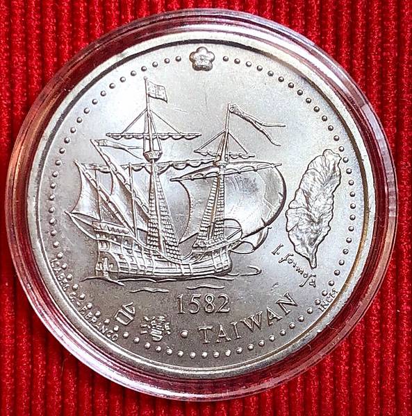 刻有「台灣 TAIWAN」以及 "I. Formosa" (葡文 意即美麗之島)